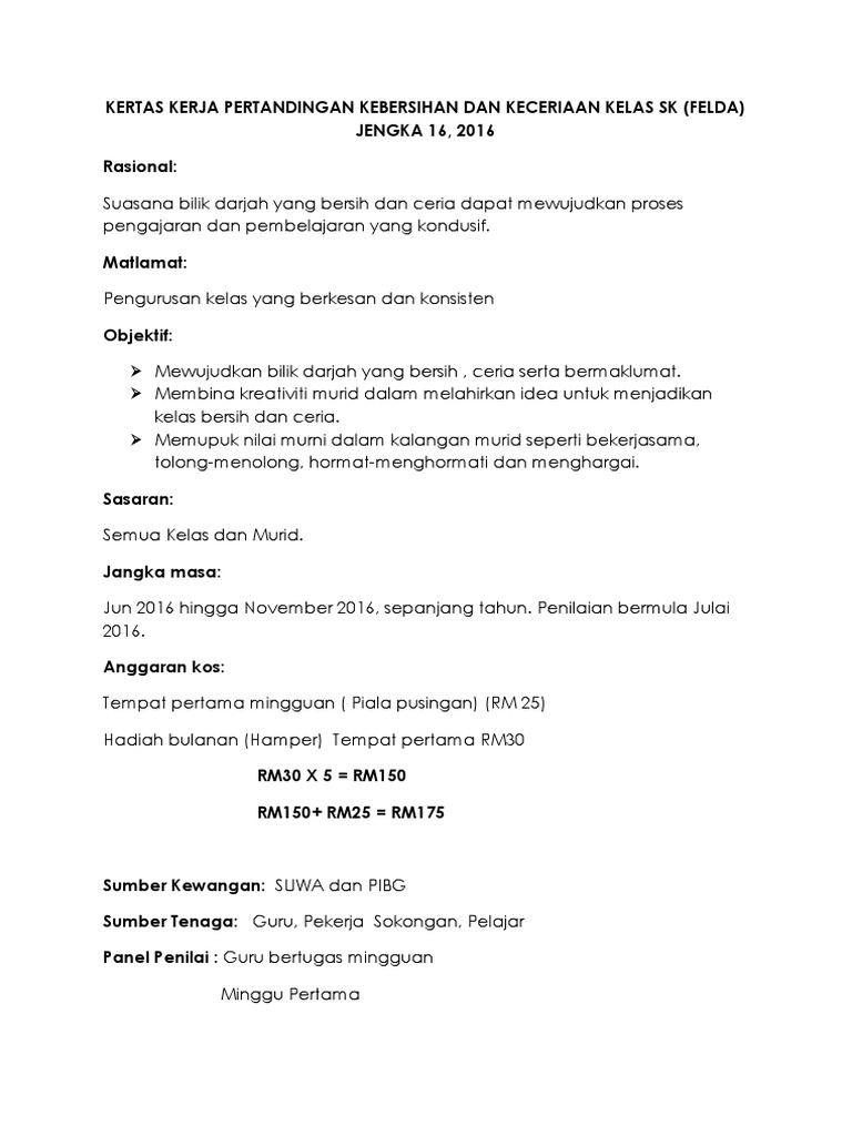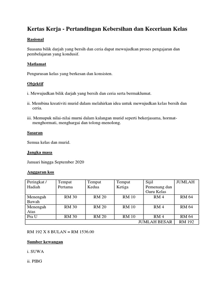 Kertas Kerja Pertandingan Kebersihan Dan Keceriaan Kelas Sk Pdf